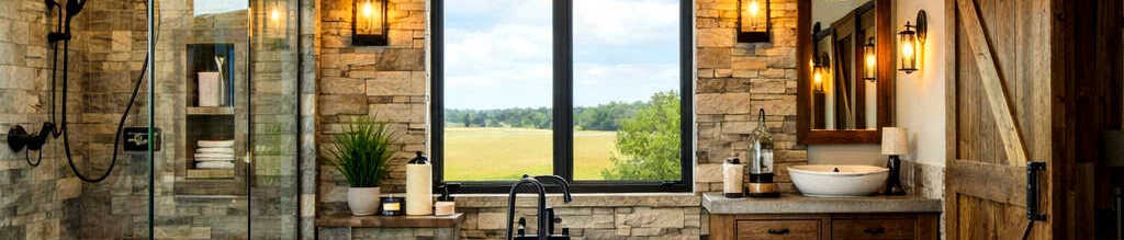 Reclaimed wood brings warmth and character into the bathroom. Whether used for vanities, shelving, or accent walls, it adds a sense of history and authenticity. For Barndominiums in Texas, reclaimed wood is one of the most requested features by homeowners wanting a true rustic feel.
